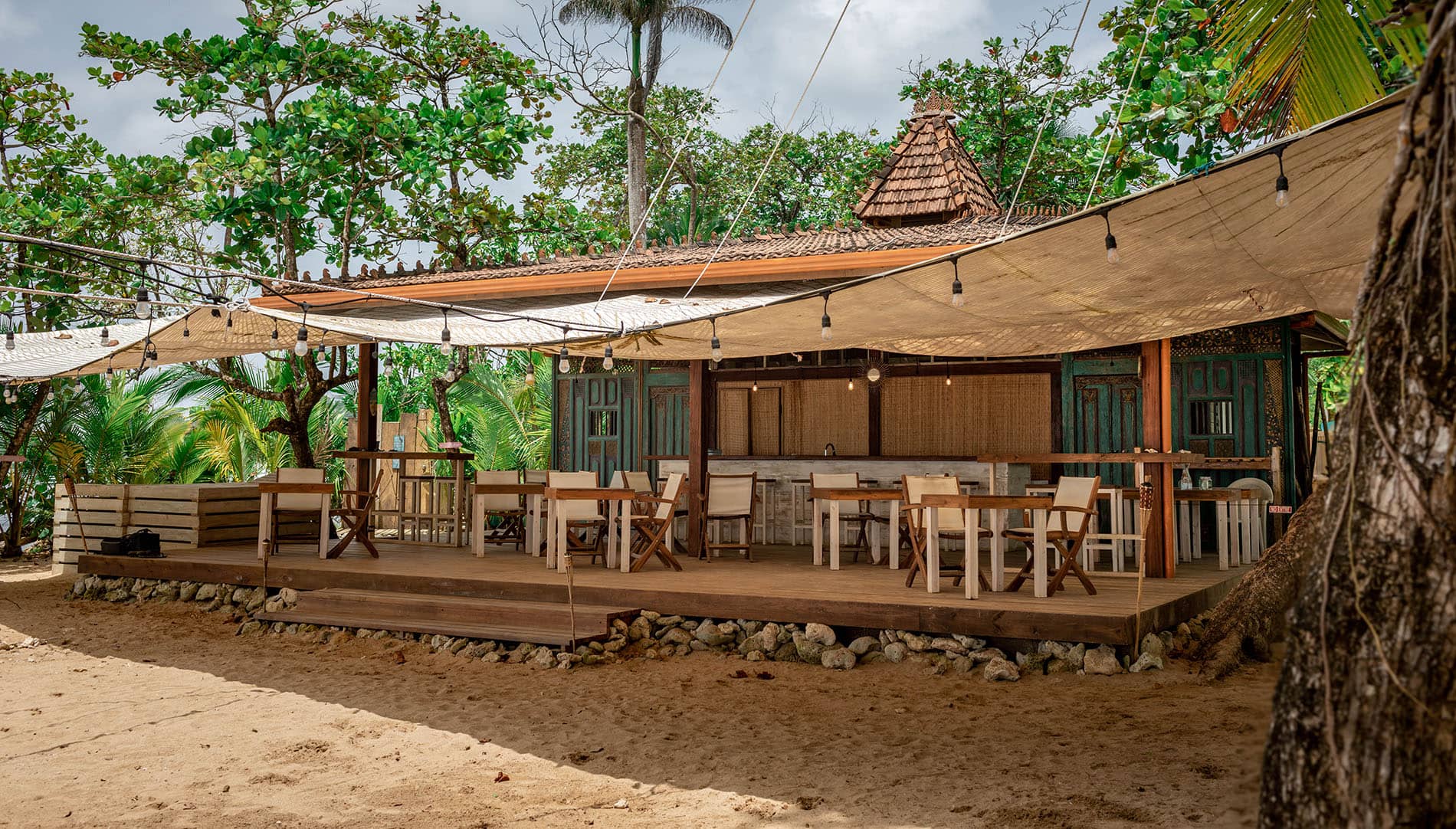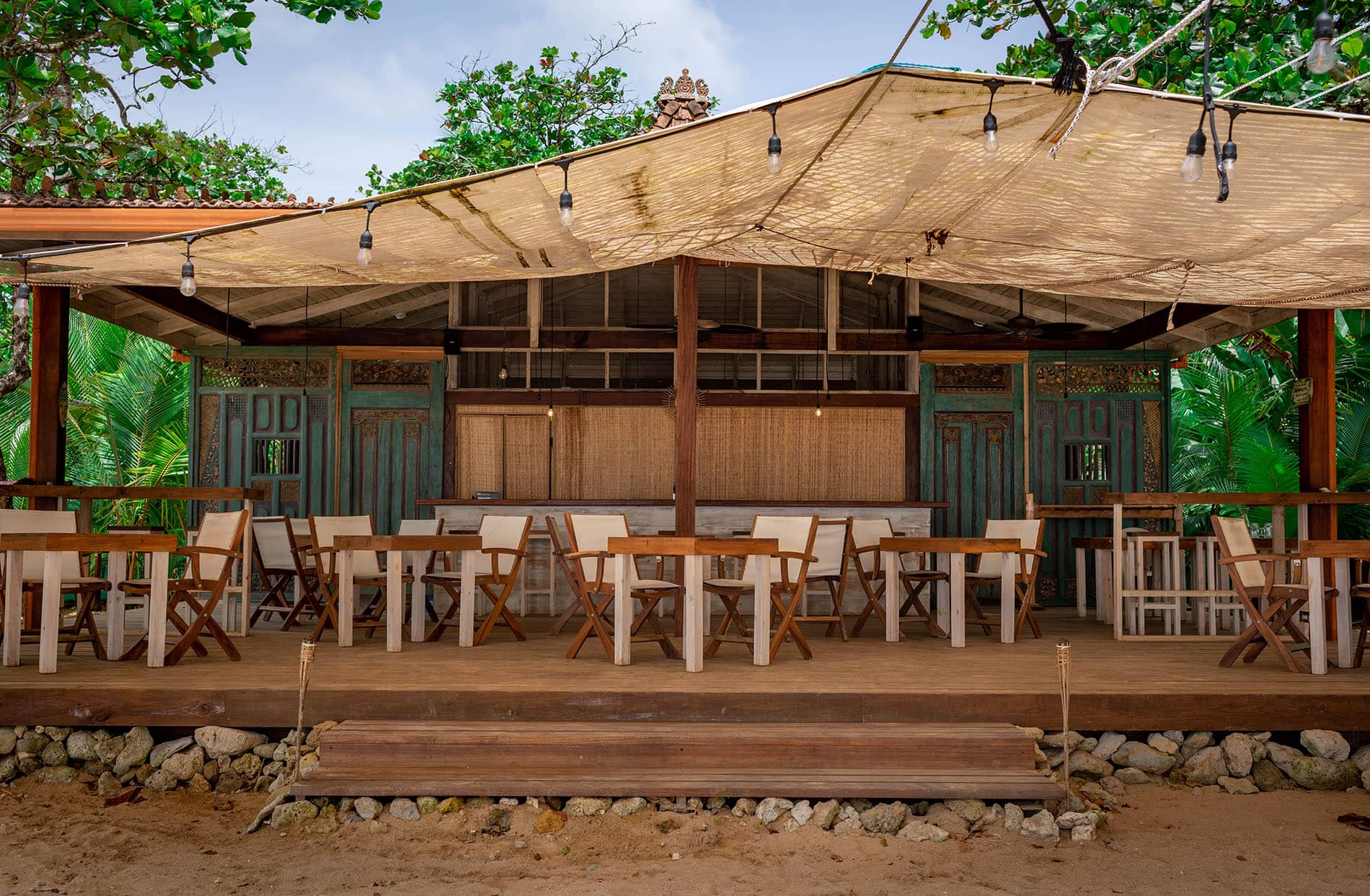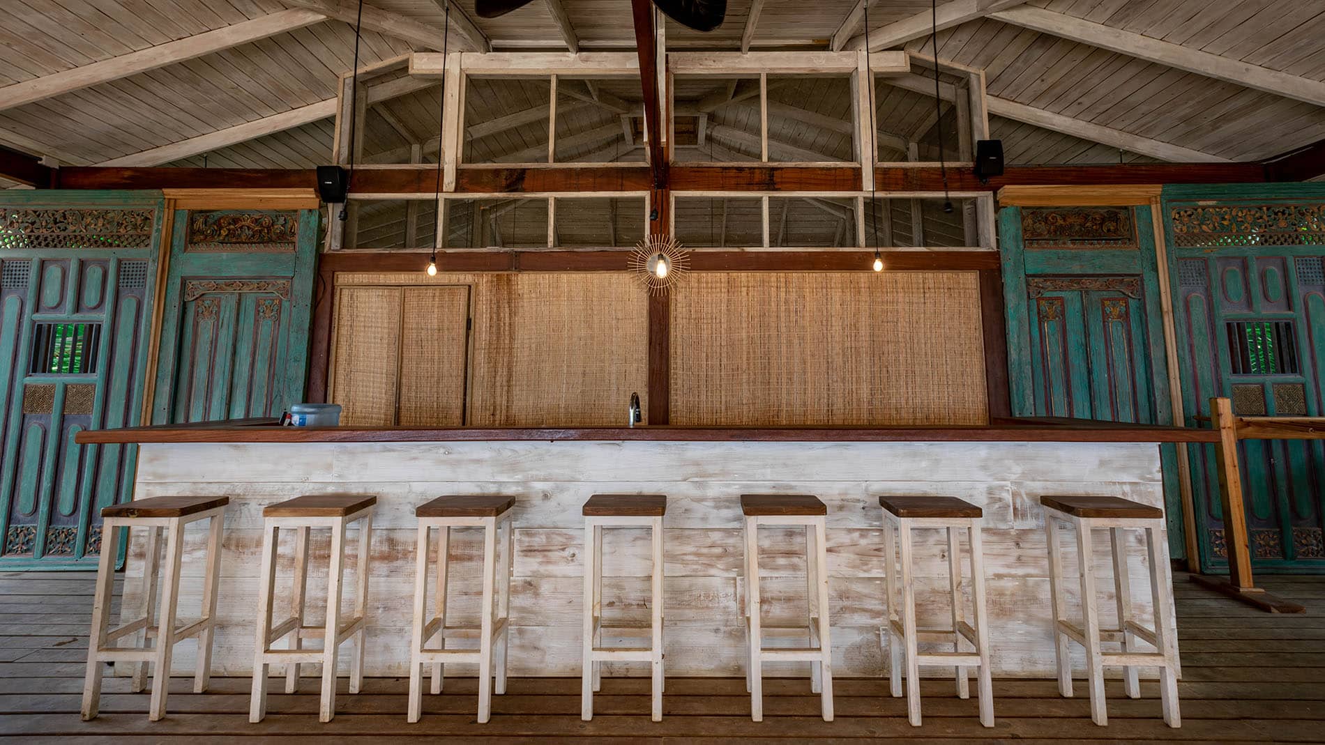 Concepto: Bar de playa con estilo fusión tropical/balines, ubicado a 20 metros de la costa en la paradisiaca playa Paunch.