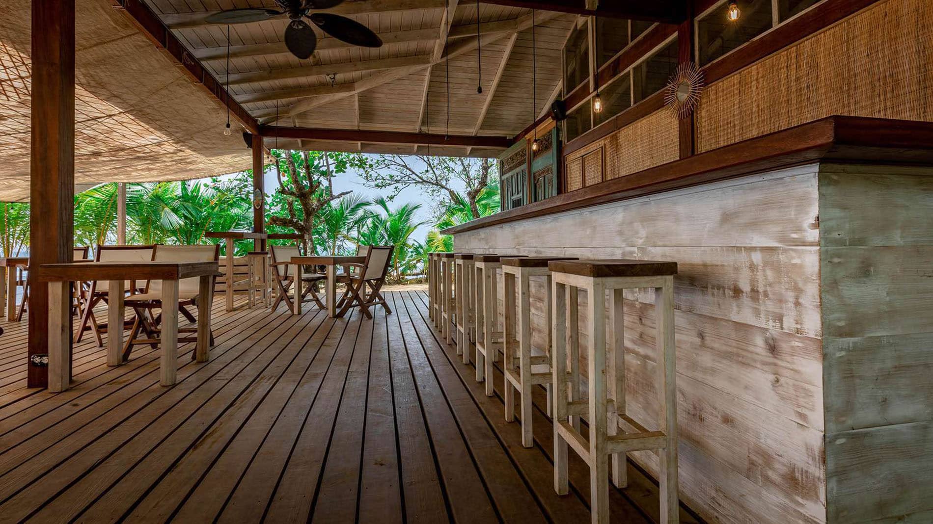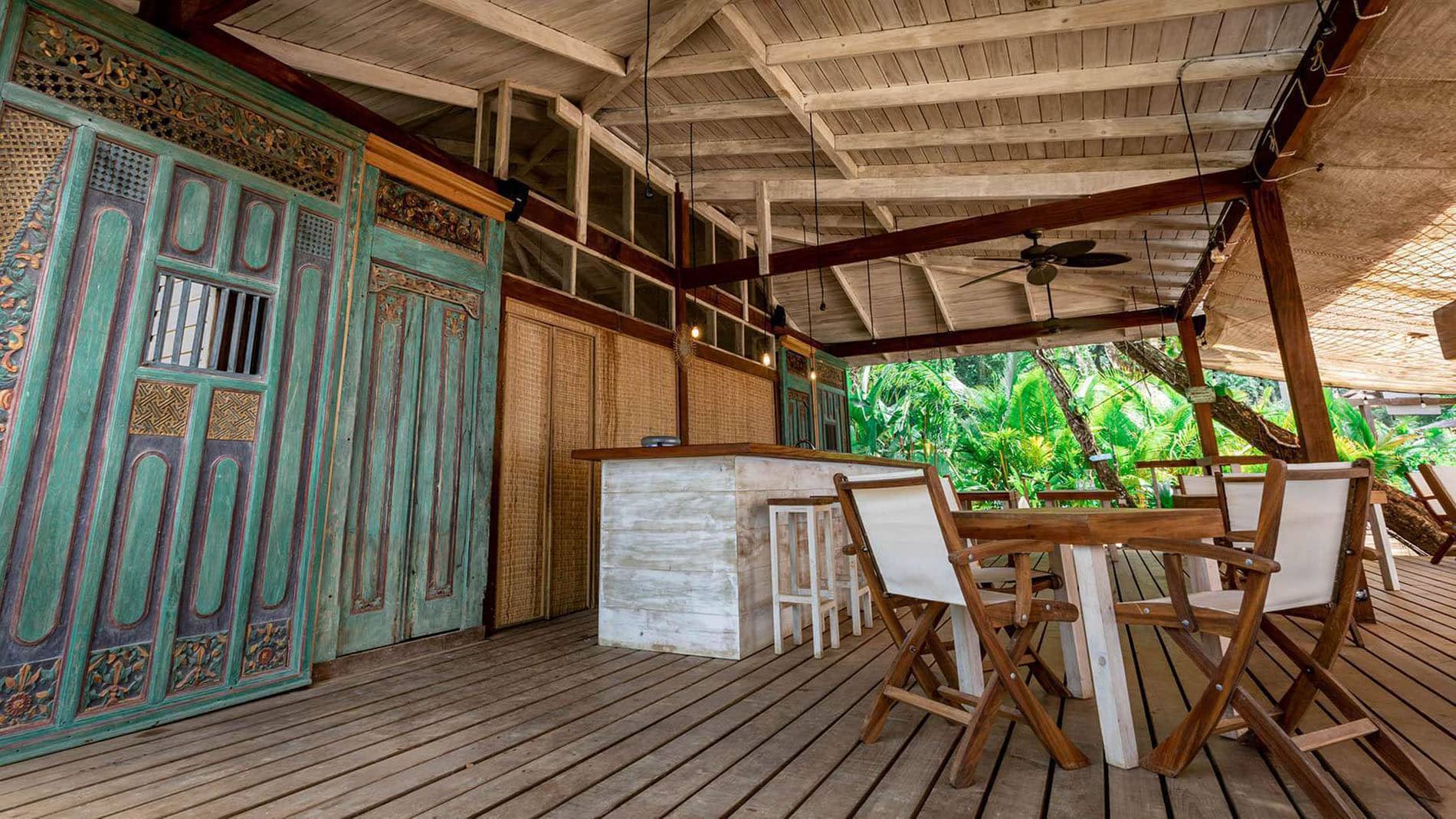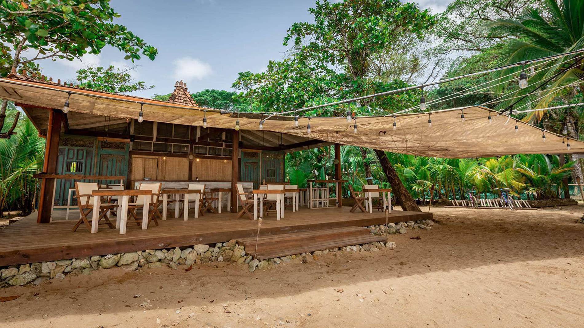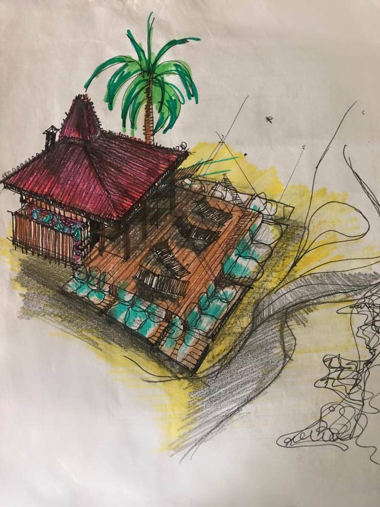 Concepto: Bar de playa con estilo fusión tropical/balines, ubicado a 20 metros de la costa en la paradisiaca playa Paunch.