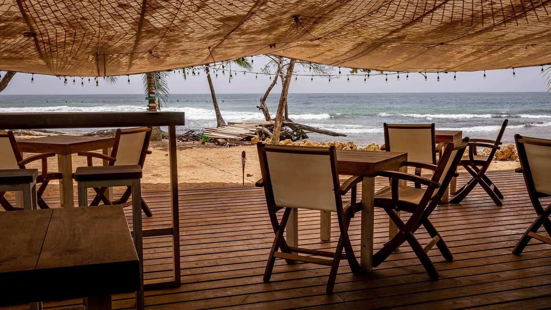 Se diseñó un gran techo de madera de almendro de provisión local, con un estilo balines y recubierto con tejas especialmente importadas desde Indonesia. La intención de lograr un espacio abierto hacia el mar con buena circulación de brisa marina y lugar de descanso para surfistas y turistas.